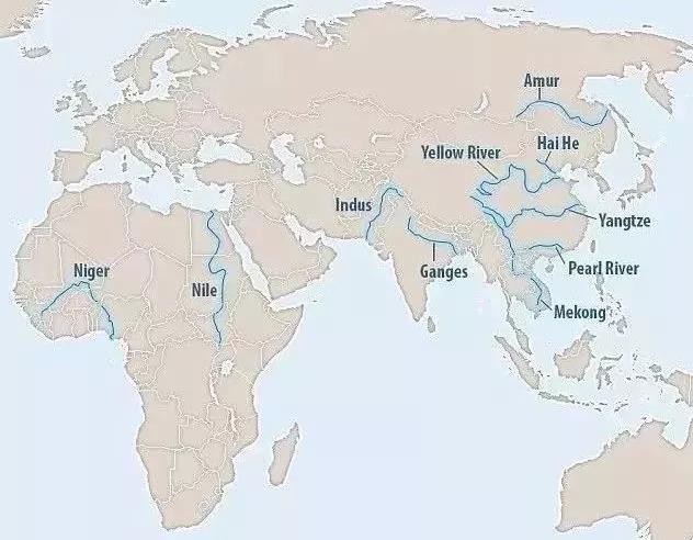 尼羅河、尼日爾河、恒河、印度河、黃河、長江、海河、珠江、湄公河、阿穆爾河(黑龍江)