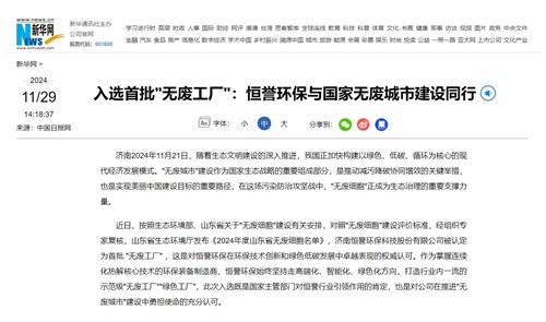 新華社旗下新華網(wǎng),環(huán)球時報旗下環(huán)球網(wǎng)等國內(nèi)多家知名媒體,以《入選首批“無廢工廠”:恒譽環(huán)保與國家無廢城市建設同行》為題,報道了恒譽環(huán)保響應國家生態(tài)文明建設號召,在“無廢城市”建設中做出了突出貢獻。文章指出,恒譽環(huán)保在資源化技術創(chuàng)新、綠色低碳發(fā)展、打造一流無廢工廠等方面起到了行業(yè)引領示范作用。原文如下: