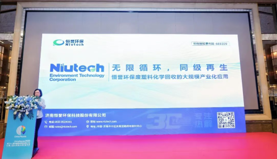 恒譽環(huán)保以“《無限循環(huán),同級再生——恒譽環(huán)保廢塑料化學回收的大規(guī)模產(chǎn)業(yè)化應用》”為本次大會帶來主題演講,當前我國每年產(chǎn)生6000萬噸廢舊塑料,不適用物理回收的低值廢塑料占比46%、回收率不足10%,大多采用焚燒填埋處理,如果其中50%采用化學循環(huán)技術,相當于低成本開發(fā)了一個6000萬噸的城市油田。針對行業(yè)的痛點問題,恒譽環(huán)保通過多年的技術積累與項目實踐,自主研發(fā)“工業(yè)連續(xù)化智能廢塑料熱解技術及成套生產(chǎn)線”,解決了大型熱解生產(chǎn)線應用過程中出現(xiàn)的“裂解系統(tǒng)結焦、進出料難以動態(tài)密封、產(chǎn)出物聚合”等多項世界性難題,能夠?qū)鹘y(tǒng)物理技術難以處理的混合廢塑料、海洋廢塑料、醫(yī)療廢塑料轉(zhuǎn)化為品質(zhì)穩(wěn)定的再生能源產(chǎn)品,后續(xù)通過深加工可作為生產(chǎn)新塑料的化工原料,真正實現(xiàn)了同級化、高值化利用。既減少了對化石能源的依賴,又降低了碳排放和環(huán)境污染,為全球廢塑料污染治理提供了可驗證、可復制、可推廣的成熟方案,憑借突出的創(chuàng)新性、先進性、示范性,該套技術裝備榮獲中國科技領域最高獎項“國家科學技術進步獎”