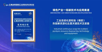 2024年9月公司產(chǎn)品“工業(yè)連續(xù)化廢輪胎(橡膠)熱裂解資源化處置關(guān)鍵技術(shù)及裝備”榮獲國家工信部國際經(jīng)濟(jì)技術(shù)合作中心主辦的 2024 金磚國家工業(yè)創(chuàng)新大賽“國際優(yōu)秀獎”。